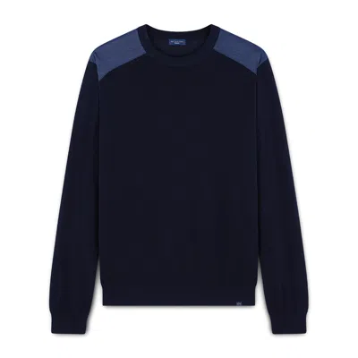 PAUL & SHARK Fresco Cotton Crewneck Sweater With Denim Details In Blu