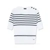 Leggera, grafica e facile da abbinare, questa maglia a righe breton è l'heritage Paul & Shark declinato in chiave chic e femminile. Il modello è realizzato in FRESCO, un filato di cotone molto sottile, resistente ed estremamente piacevole durante la stagione calda. I bordi a costine definiscono la silhouette del capo, mentre i bottoni logati sulla spalla aggiungono una nota iconica e preziosa.