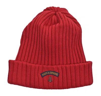 PAUL & SHARK Men's Ribbed Wool Beanie With Anchor Badge In Red