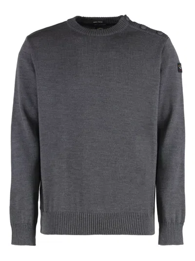 PAUL & SHARK Ribbed Crew-neck Wool Sweater With Shoulder Buttons In Grey