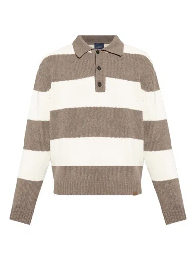 brown wool blend stripe detail front button placket long sleeves ribbed cuffs and hem
