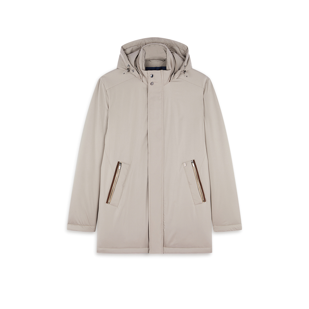 A masterpiece of functionality. This car coat features an adjustable hood and rear buttoned vent for effortless versatility, styled with a zip closure and protective press stud flap. This garment is crafted from Typhoon Platinum Ultra Light: a high-performance fabric with an ultra-luxurious tactile feel. Embellished with refined Alcantara® details and filled with lightweight yet highly insulating Primaloft: a special kind of padding produced from recycled microfibre, cementing Paul & Shark’s commitment to protecting the planet.