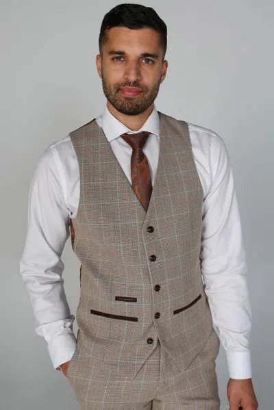 PAUL ANDREW Holland Tweed Check Waistcoat In Beige