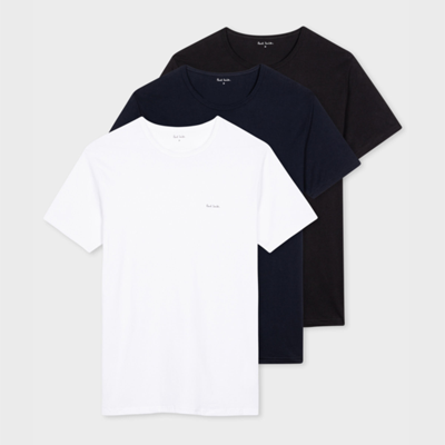 Paul Smith 3 Pack Mens Script Logo T-Shirts in 2A White/Navy/BlackThree pack of white, navy and black crew neck T-shirts made from soft 100% organic cotton. Featuring a small Paul Smith logo print on the chest and inside the collar. Designed for a comfortable fit, this loungewear essential will seamlessly elevate your everyday wardrobe. 100% Cotton M1A-389-M3PK