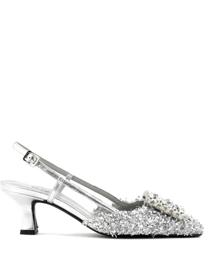 silver-tone buckle-fastening ankle strap pointed toe branded insole kitten heel