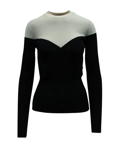 Bi-color Long Sleeves Knit Top In Black And Beige Viscose