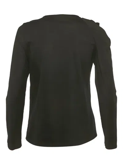 black ruched detail round neck long sleeves Condition: EXCELLENT. This previously owned item is in near-perfect condition with no signs of damage or use.