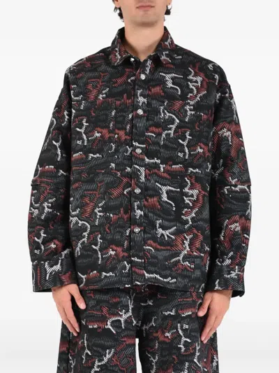 PDF Buttoned Patterned Shirt In Black