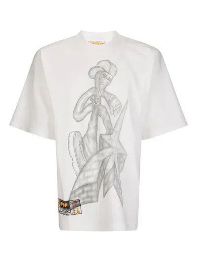 Elevate your casual wardrobe with this oversized cotton T-shirt by PDF. It features a striking large-scale graphic of a figure in a cap and mask, complemented by abstract designs. Crafted from 100% cotton, it ensures exceptional comfort and breathability. A contrasting internal label adds a distinctive touch, making it a standout piece for any occasion. Material - 100% cotton Oversized fit Large-scale graphic design Abstract designs Contrasting internal label
