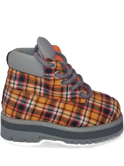 orange plaid pattern lace-up fastening platform sole pull-tab at the heel round toe