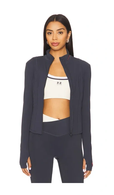 P.E Nation Breakthrough Jacket in Slate. - size XS (also in L, M, S) P.E Nation Breakthrough Jacket in Slate. - size XS (also in L, M, S) 82% nylon 18% elastane. Machine wash. Front zip closure. Front zip pockets. Printed logo detailing at collar. Cropped fit. Midweight activewear fabric with thumbhole design. Item not sold as a set. PENR-WO44. 243J297. P.E Nation is the pioneer of active, fashion, and street rolled into one brand. Each active piece is extremely high performance while also being breathable, smoothing, and lifting. Each collection is thoughtfully curated so that every piece can be worn back many different ways, giving you a plethora of options to style it your way. P.E Nation has infiltrated the athleisure market with wearable, fashion forward sports luxe pieces that can be mixed in with any modern wardrobe.