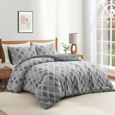 Year-round Warmth Clipped Comforter Set Soft Microfiber Plum Blossom In Gray