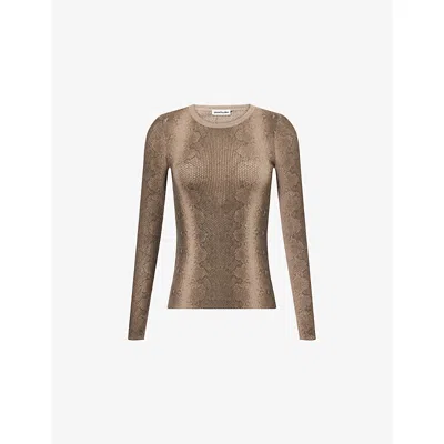 PEACHY DEN Womens Olive Python Lulu Round-neck Thermal-knit Jumper In Brown