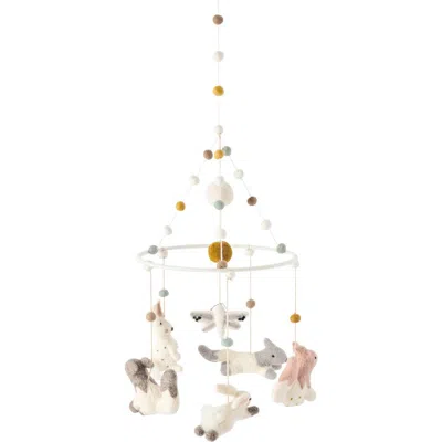 Elevate your baby's nursery with one-of-a-kind mobiles. Each piece is a unique work of art, thoughtfully crafted to enchant and inspire. Explore the collection today and add a touch of individuality to your baby's space. 28"H x 9"W Hang securely on a ceiling hook; hardware not included Item ships in a gift box<br> Handmade with 100% wool and AZO-free dyes Spot clean Imported