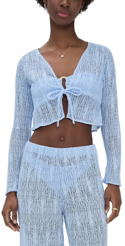 PEIXOTO Jesse Linen Blend Long-sleeve Tie-front Top In Blue
