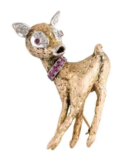 Pre-owned 14k Ruby & Diamond Deer Brooch In Multi