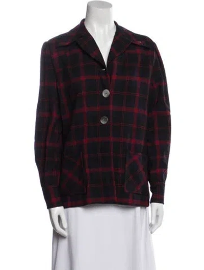Pendleton Blazer Blue Plaid Print Pointed Collar Fit: Jackets by Pendleton typically fit true to size. | Pendleton Plaid Print Blazer in Blue, Women's US 14 | XL