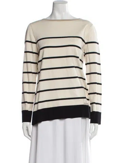 Pendleton Silk Pullover Neutrals Striped Long Sleeve with Bateau Neckline Fit: Knitwear by A Piedi typically fit true to size. | Pendleton Silk Striped Sweater in Neutrals, Women's L