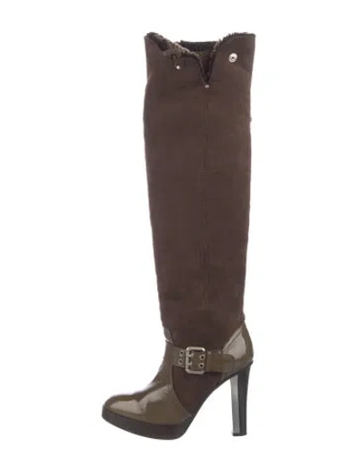 Pendleton Suede Over-The-Knee Boots Brown Semi-Pointed Toes Platform Wrap-Around Straps | Pendleton Suede Boots in Brown, Women's 7.5