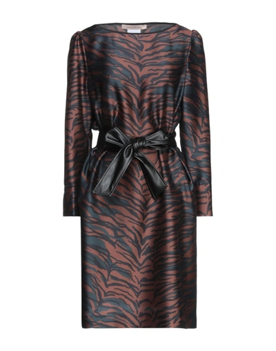 PENNYBLACK Short dresses. satin, side closure, zipper closure, sash, folds, zebra stripes, v-neck, long sleeves, buttoned cuffs, no pockets, unlined. 100% Polyester