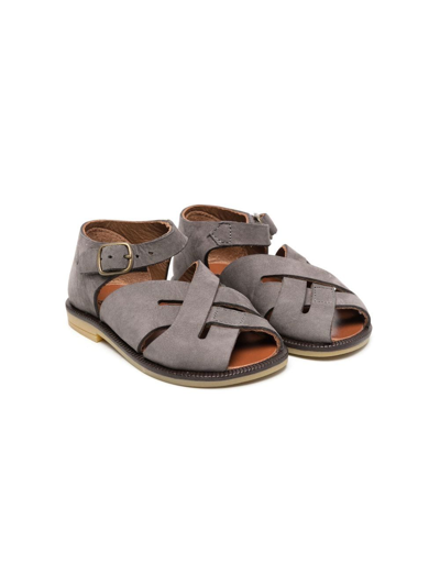 PÈPÈ Kids' Crossover-strap Leather Sandals In Grey