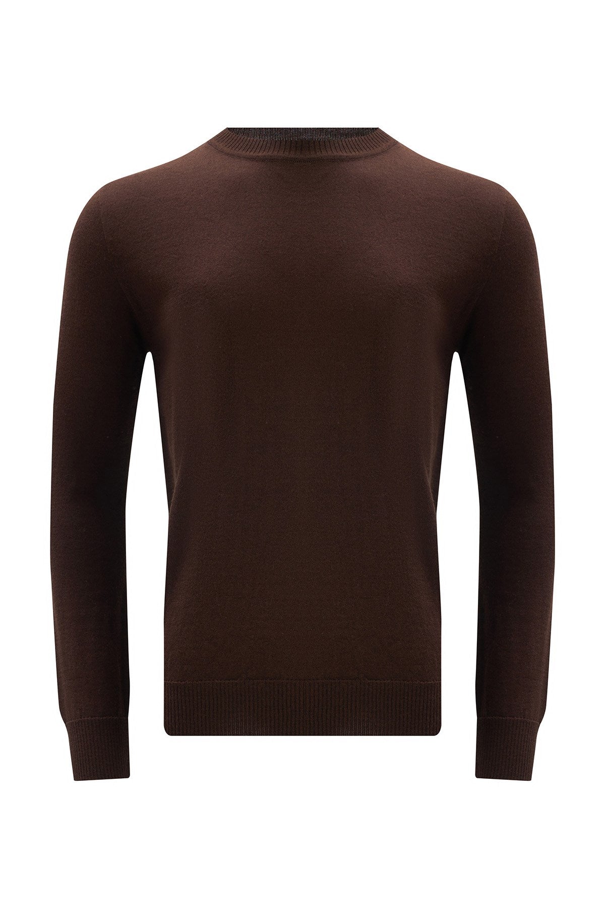 Men's Basic Crew Neck Knitwear Pullover - Brown