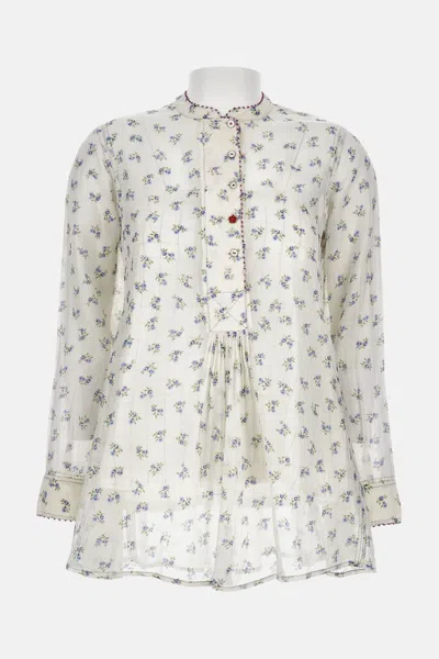 Silk blouse. Long sleeve. Flower print. Color: white