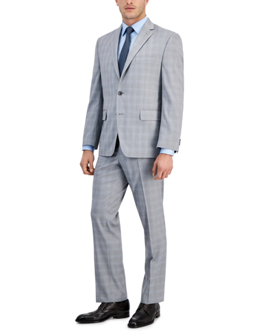 PERRY ELLIS Men's Modern-fit Solid Nested Suit In Light Grey Plaid