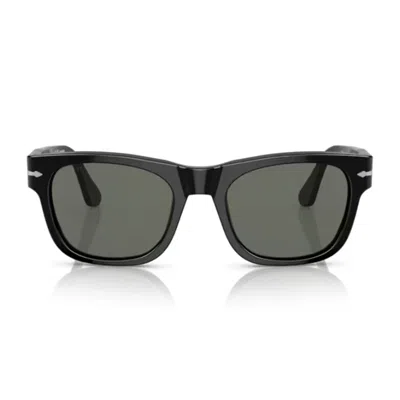 The Persol PO3269S sunglasses feature a rectangular design made from glossy black acetate. Green polarized crystal lenses provide excellent glare protection and clarity. Signature silver arrows on the temples reflect the brand's heritage, blending retro glam-rock style with modern functionality. - Rectangular design - Glossy black acetate frame - Green polarized crystal lenses - Glare protection - Signature silver arrows on temples Calibre - 52 mm