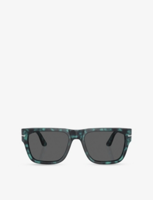 PERSOL Womens Blue Po3348s Rectangle-frame Tortoiseshell Acetate Sunglasses In Dark Grey