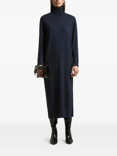 dark blue roll neck side splits long sleeves midi length