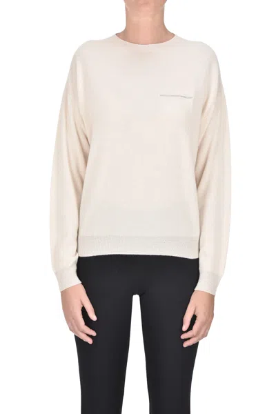 Cashmere pullover, rounded neckline, embellished chest pocket, ribbed lurex trims. Sample size: 40 COMPOSITION: 97% Cashmere 3% Viscose Made in Italy
