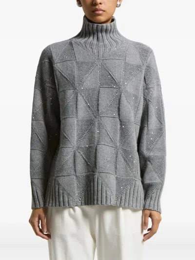 PESERICO Geometric-pattern Sequin-embellished Sweater In Gray