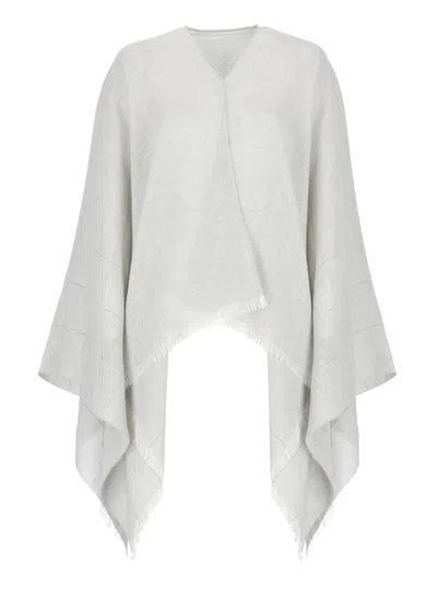 PESERICO Grey Poncho With Bright Light Details In Gray