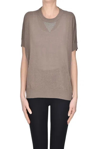 Lined and cotton pullover, embellished rouned neckline, short sleeves. Sample size: 40 COMPOSITION: 60% Linen 40% Cotton Made in Italy
