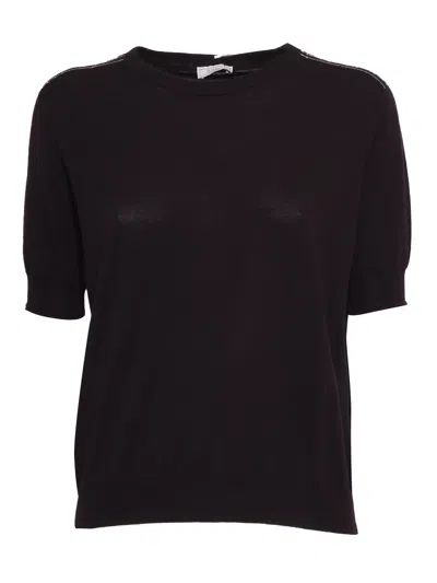 PESERICO Relaxed Fit Black Knitted Sweater With Ribbed Texture