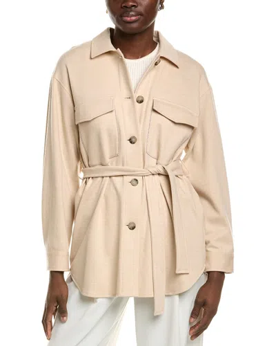 Elevate your outerwear collection with the Peserico Wool-Blend Coat in antique white. This sophisticated coat features a spread collar, dual chest pockets, beaded trim, button cuffs, dual side seam pockets, and a self-tie belt at the waist for a flattering fit. The button front closure adds a classic touch to this modern piece. Made in Italy from 79% fleece wool and 21% cotton, this coat is lined with 65% polyester and 35% cotton for added comfort. Please note that size selections are European, so be sure to reference the size chart for US conversions. The model is 5'10 and is wearing a size 40, with measurements that may vary slightly by size. Dry clean only to maintain the quality of this luxurious coat. Add a touch of Italian sophistication to your wardrobe with the Peserico Wool-Blend Coat.