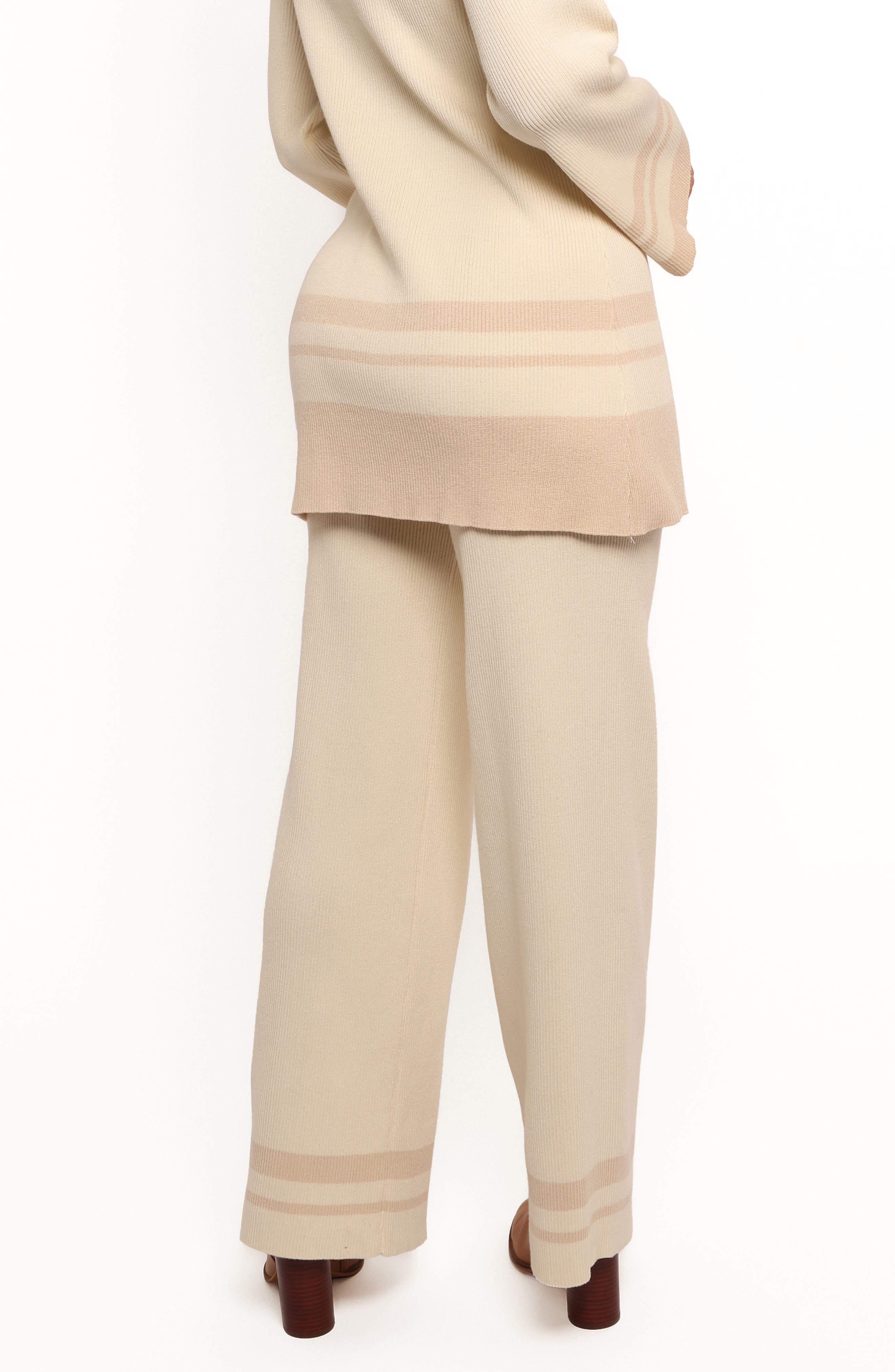 Petal & Pup Lowell Stripe Wide Leg Rib Pants In Neutral