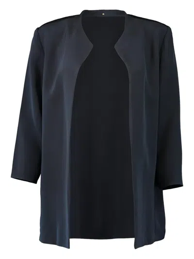 navy blue open front three-quarter sleeves straight hem collarless