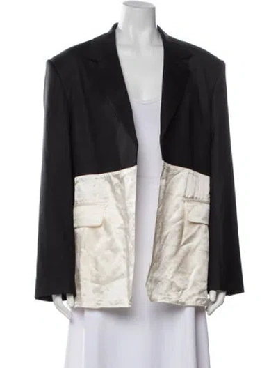 Peter Do Virgin Wool Jacket Black Colorblock Pattern Pointed Collar Slit Pockets & Open Front Fit: Jackets by Peter Do typically fit true to size. | Peter Do Virgin Wool Colorblock Pattern Jacket in Black, Women's M