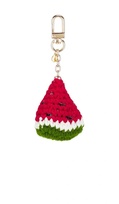 petit moments Knit Fruit Keychain in Red. Crochet watermelon keychain on gold-tone metal chain. Lobster clasp closure. Please note, bag is not included. Measures approx 4.5 dangling. PETM-WA206. MS17326. petit moments is an emerging woman-owned brand from Los Angeles, CA. They believe that everyone should have the opportunity to express themselves through clothing and accessories without being discouraged by a price tag. Their mission is quite simple - they want to encourage our community to enjoy every moment that life has to offer while being conscious of our environmental impact. petit moments has shifted to be more environmentally conscious by implementing initiatives at the corporate level and providing their audience with sustainable accessory options. Continue to enjoy the moment, while helping the planet.