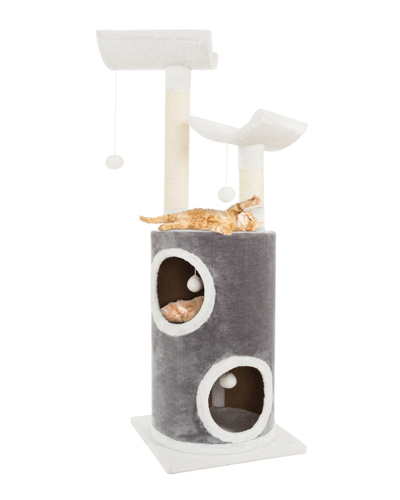 Design Details: The Petmaker Sleep And Play 5 Tier Cat Tree With Double Decker Condo Will Provide Hours Of Fun And Adventure For Cats And Kittens While Also Offering A Comfortable Place To Sleep. This Attractive Cat Tree Condo Comes With 4 Hanging Balls For Hours Or Fun As Well As 2 Curved Platforms For Nap Time. The Double Decker Condo Gives Privacy And A Place To Hide While The 2 Scratching Posts Provide A Place For Cats To Maintain Their Claws. It Is Easy To Assemble, Is Covered In Soft Plush Fabric And Will Look Great In Any Home. Particle Board And Polyester Construction China Measures 44.75In X 15.75In X 15.75In