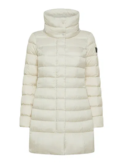 Peuterey long down jacket with high collar in super-light narrow-channel fabric, made from 100% recycled polyester, treated with pfc-free technology that guarantees water repellency without the use of harmful chemicals, certified natural down filling, fro