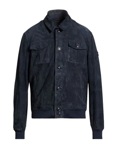 PEUTEREY Man Jacket Midnight Blue Size Xl Leather