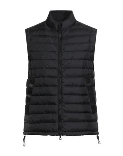 shell, brand logo, solid color, crewneck, sleeveless, duck down filling, lightweight padding, zipper fastening, slit pockets, drawstring hem, contains non-textile parts of animal origin, machine wash, do not bleach, tumble dry , Color: Black , Size: L