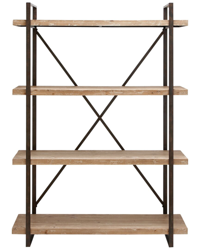 Color/Finish: Brown Create A Rustic Display With This Tall Shelving Unit With Hardcover Books, Organic Vases, Large Beaded Garlands And Potted Plants. This Item Ships In 1 Carton. Suitable For Indoor Use Only. Some Assembly Required. Maximum Weight Limit Is 30 Lbs. This Is A Single Brown Colored Display Shelf. Fir Shelving Unit Features 4 Shelves. Industrial Style. Designed With Rugged Charm And Edgy Allure, Where Metal Finishes And Raw Materials Unite To Create An Urban Aesthetic That Showcases Your Artistic Expression. Tall Storage Shelf Is Crafted With Solid Wood And Metal Material. This Industrial Display Shelf Highlights A Natural Wood Brown Textured Finish With Obsidian Black Frame. Black Metal And Wood Shelving Unit Features X-Shaped Back Frame And Tall Rectangular Side Structure Supporting Thick Wooden Shelves, With An Elevated Base For Easy Cleaning Underneath. Measures 47In X 14In X 67In 4 Shelf/Shelves Fir Natural Or Dyed Animal Products Sourced From China Wipe Clean With A Dry Cloth Assembly Required Imported