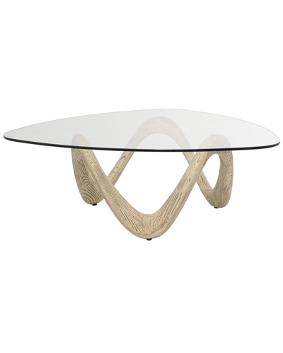 Color/Finish: Beige A Spacious Table Top With A Unique Design Offers An Eye Catching Display From Every Angle. This Durable Coffee Table Offers A Stylish Design And Smooth Top For A Convenient Surface Space. Compact Space Friendly In Design Best Against Solid-Colored Backgrounds In Modern Or Contemporary Settings. This Item Ships In 2 Cartons. Suitable For Indoor Use Only. This Item Ships Fully Assembled In One Piece. Maximum Weight Limit Is 100 Lbs. This Is A Single Beige Colored Living Room Table. Contemporary Style. Embrace Artistic Expression With A Style That Highlights Bold Designs With Sleek Lines, Neutral Elements, And A Minimalist Aesthetic. Beige Wood Colored Cement Holds Up A Clear Glass Triangular Table Top With Round Corners. Contemporary Coffee Table With A Glass Top And Wave Shaped Cement Pedestal Base With Wood Inspired Lines Painted On It. Light Brown Coffee Table Can Work As A Coffee Table Or Accent Table With Its Clear Top That Will Provide A Secure Display For All Your Decors. Measures 42In X 42In X 15.2In Cement Wipe Clean With A Dry Cloth Assembly Required Imported