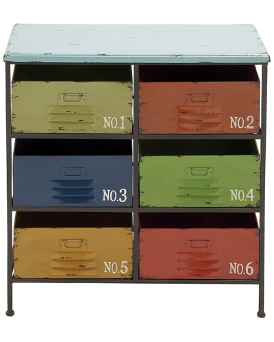 Color/Finish: Multicolored This Accent Faux Furniture Serves Both Decorative And Functional Purposes And Is Best To Use In Industrial-Themed Entryway, Lobby, Living Room, Kitchen, Or Home Office. Includes Anti-Tipping Hardware To Prevent Tipping. This Item Ships In 1 Carton. Multi Colored Storage Unit Features 6 Drawers With 25 Lbs Weight Limit. Suitable For Indoor Use Only. This Item Ships Fully Assembled In One Piece. Maximum Weight Limit Is 100 Lbs. This Is A Single Multi Colored Entryway Storage With Baskets. Industrial Style. The Drawers Showcase Typographies Of Ono.1O, Ono.2O, Ono.3O, Ono.4O, Ono.5O, And Ono.6O. Designed With Rugged Charm And Edgy Allure, Where Metal Finishes And Raw Materials Unite To Create An Urban Aesthetic That Showcases Your Artistic Expression. Crafted Of Robust Iron And Mdf, This Accent Faux Furniture Can Stand The Test Of Time. It Gives Charm And Personality To Your Industrial Space With Its Multi Colored Finish. Features Sturdy Metal Frame With Six Rectangular Colored Drawers With Louvered Design. Measures 23In X 13In X 29In 6 Drawer(S) Iron Wipe Clean With A Dry Cloth Assembly Required Imported Contents Of Set: Entryway Storage Baskets