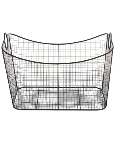 PEYTON LANE Metal Open Frame Wire Grid Storage Basket With Curved Sides & Ring Handles In Black