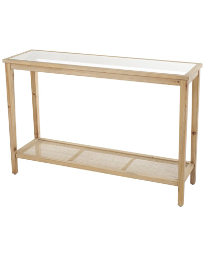 Color/Finish: Brown Bring A Finishing Touch To Your Home For An Inviting Appeal With This Console Table. A Stylish Way To Keep Your Belongings Organized In The Home. The Narrow Width Of This Wood Console Table Makes It A Great Entryway Table Or Sofa Table To Display Plants, Framed Pictures, Books, And Small Table Decor. This Item Ships In 1 Carton. Suitable For Indoor Use Only. This Item Ships Fully Assembled In One Piece. Maximum Weight Limit Is 50 Lbs. This Is A Single Brown Colored Entryway Table. Wood Console Table Features A Single Shelf. Modern Style. Inspired By Sleek Elegance And Clean Lines, A Minimalistic Design Offers Effortless Luxury With Monochromatic Tones And Bold, Angular Structures. A Sturdy Natural Wood Construction Makes Up The Framework Of This Console Table, With A Rattan Lower Shelf And Glass Top. Rattan Console Table Features An Oiled Light Brown Finish Throughout With A Clear Glass Tabletop. Create An Inviting Aesthetic And Freshen Up Your Home With This Updated Natural Console Table That Provides Extra Storage Space For Your Unique Home Decor Pieces. Measures 47.2In X 14.2In X 31.8In 1 Shelf/Shelves Wood Natural Or Dyed Animal Products Sourced From China Wipe Clean With A Dry Cloth Assembly Required Imported
